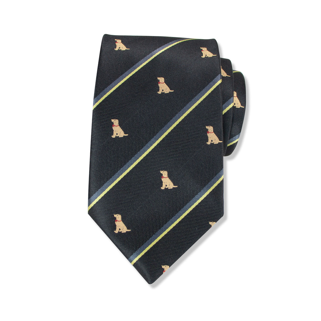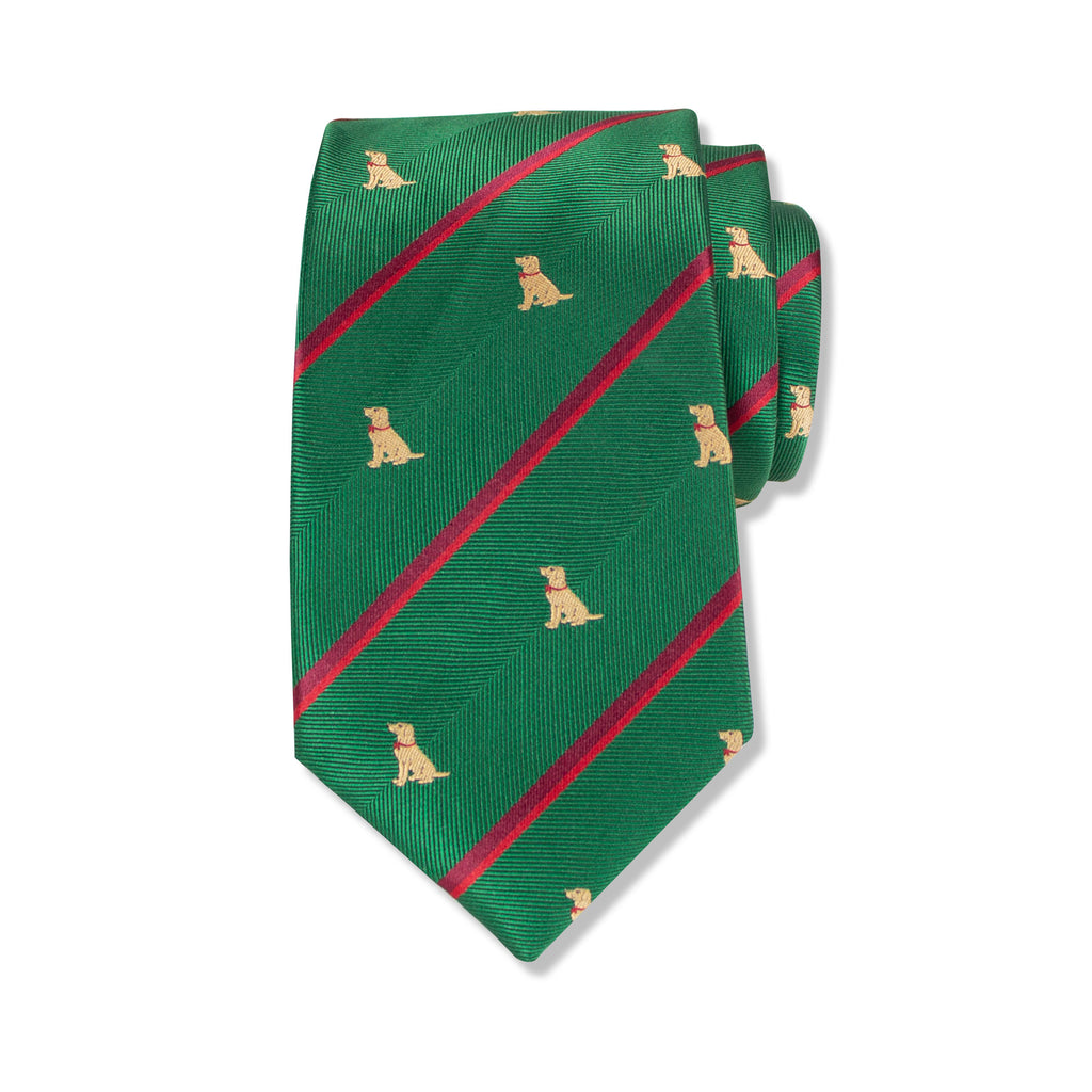- Gold and yellow labrador retrievers wearing red bows are delicately woven to this handcrafted necktie.
