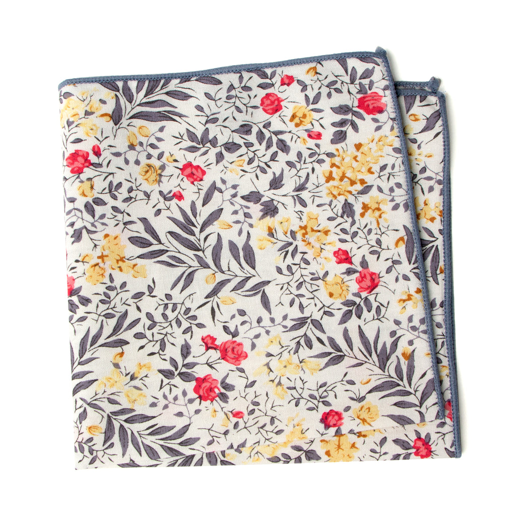 Boys' Cotton Floral Print Pocket Square, Yellow Red Grey (Color F62)