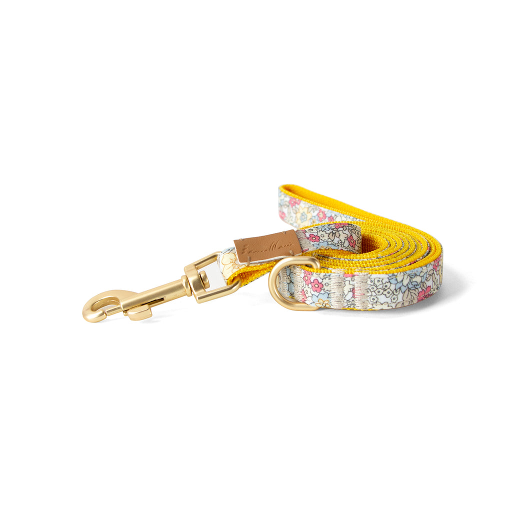 Cotton Floral Dog Leash with Matt Gold Metal Snap and D-Ring, 01-Champagne and Blue