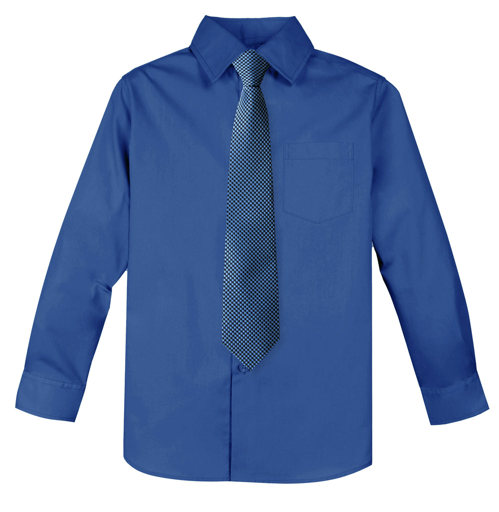 Boys' Cotton Blend Dress Shirt and Matching Necktie Set, Royal Blue-98