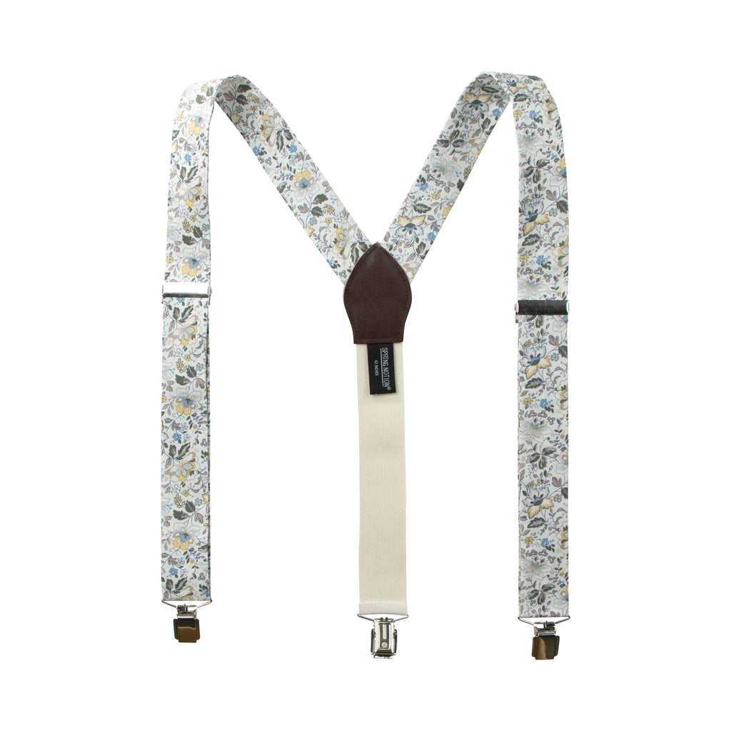 Men's Floral Cotton Suspenders, Gold Metallic (Color F44)