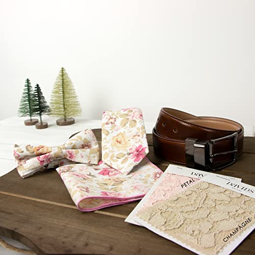 Boy's Cotton Floral Print Bow Tie and Pocket Square Set, Peach (Color F25)